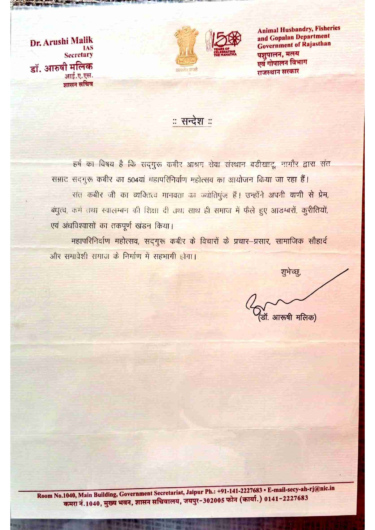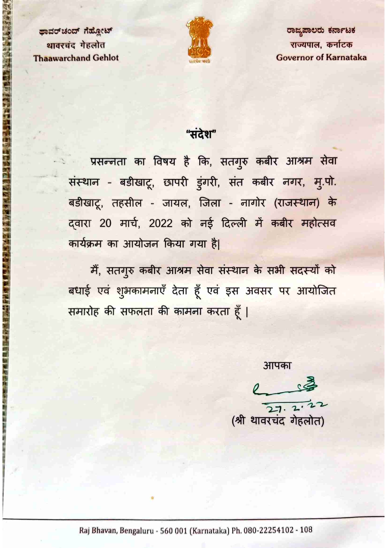 सद्गुरु कबीर के विचारों से ओत-प्रोत होकर यह संस्था सन् 2012 से समाज सेवा और पर्यावरण रक्षा, नशामुक्ति अभियान पर लगातार बिना जाति धर्म भेदभाव से परे मानव कल्याण के लिए निःशुल्क सेवा कार्य कर रहा है। राजस्थान सरकार द्वारा पर्यावरण संरक्षण में उत्कृष्ट कार्यो के दृष्टिगत कई बार सम्मान प्राप्त करने का अवसर प्राप्त हुआ। पर्यावरण क्षेत्र में देश एवं विदेश में भी वृक्षारोपण का कार्य कर पर्यावरण संरक्षण प्रोत्साहन का कार्य किया है। विपत्तिकाल में समाज के बीच गरीब बेबस लाचार लोगों को राशन सामग्री से लेकर के चिकित्सा सुविधा, शिक्षा, कपड़ों जैसी विशेष सेवाएं जनसमुदाय को निस्वार्थ सप्रेम भेंट करता आ रहा है चाहे कोरोना काल हो या नोटबंदी...! हर समय लोगों की मदद के लिए यह संस्थान तैयार रहा है।